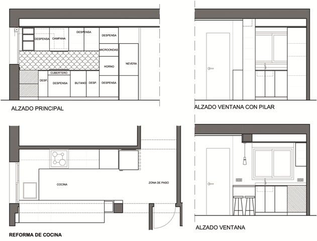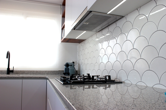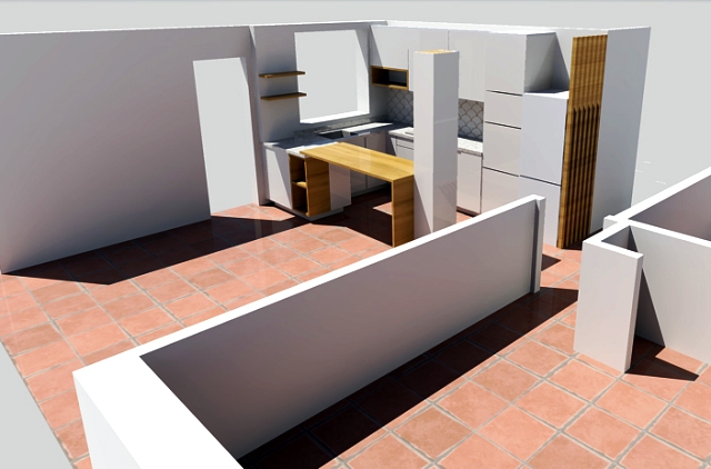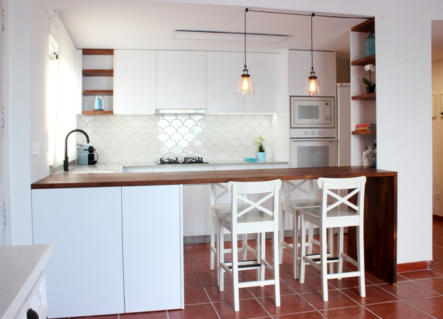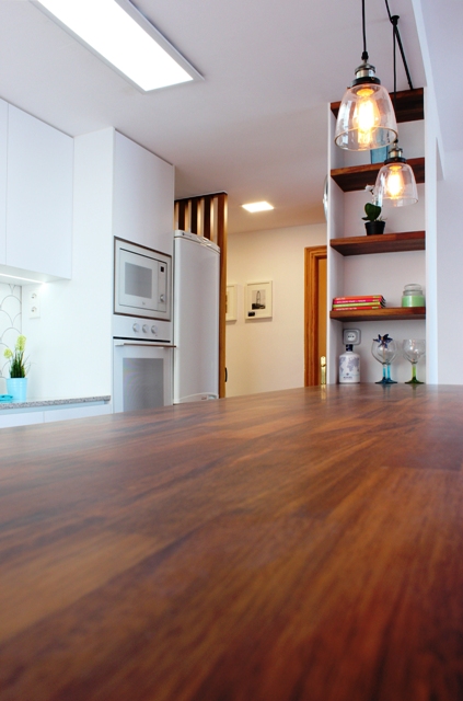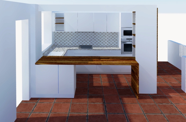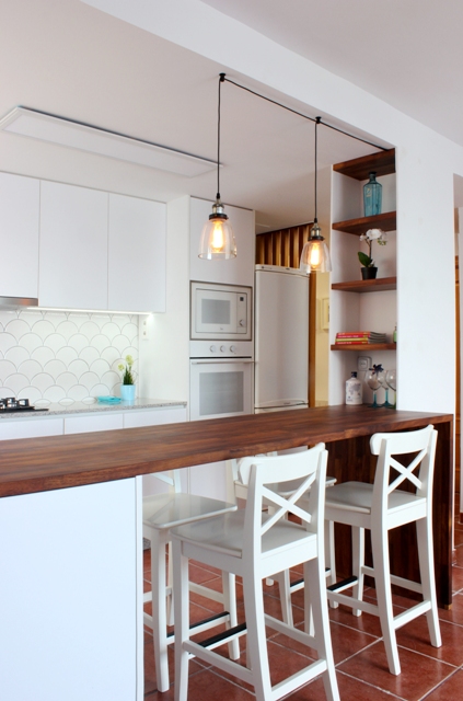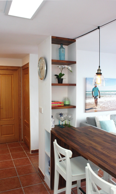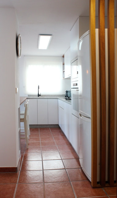 Proyecto de interiorismo y dirección de obra para unificar la cocina con el salón en un apartamento de verano.