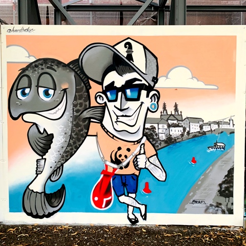 Intervención en el Proyecto Laggs Wall Art para la campaña de regreso del salmón al Rhein organizada por WWF y coordinada por la galería de arte Artstübli.